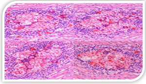 چندکانونی در کبد، دژنرسانس و نکروز سلولهای عضله قلب و توبولهای کلیوی نیز از دیگر یافتههای بافتشناسی هستند.